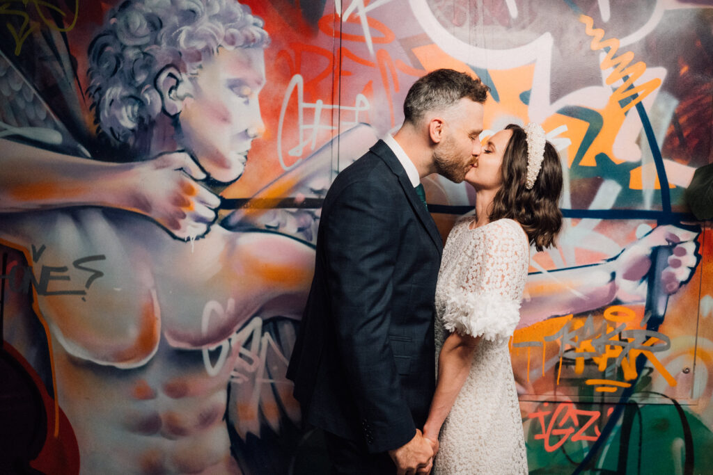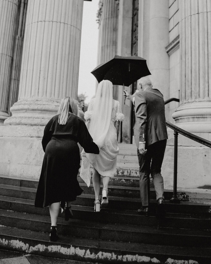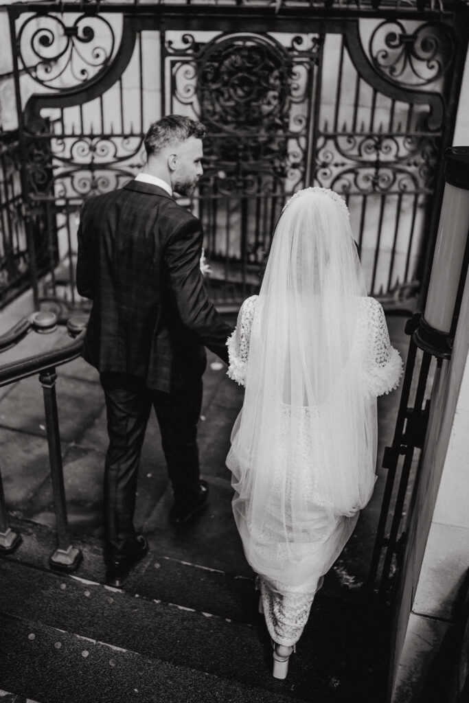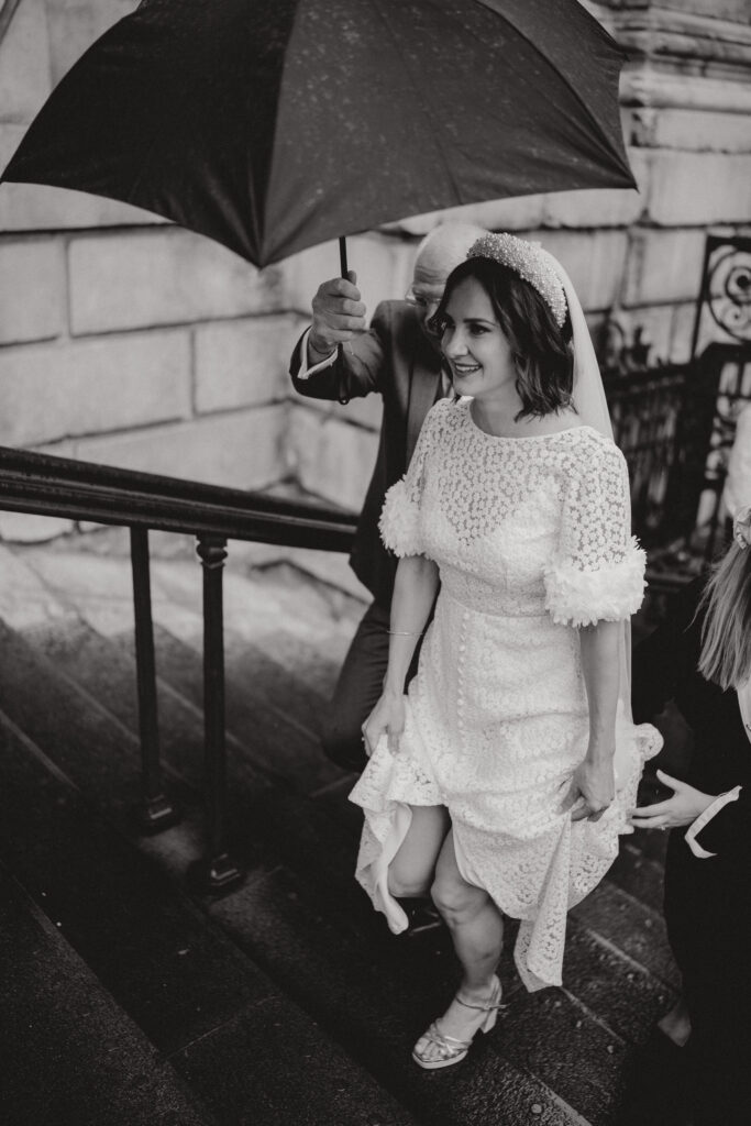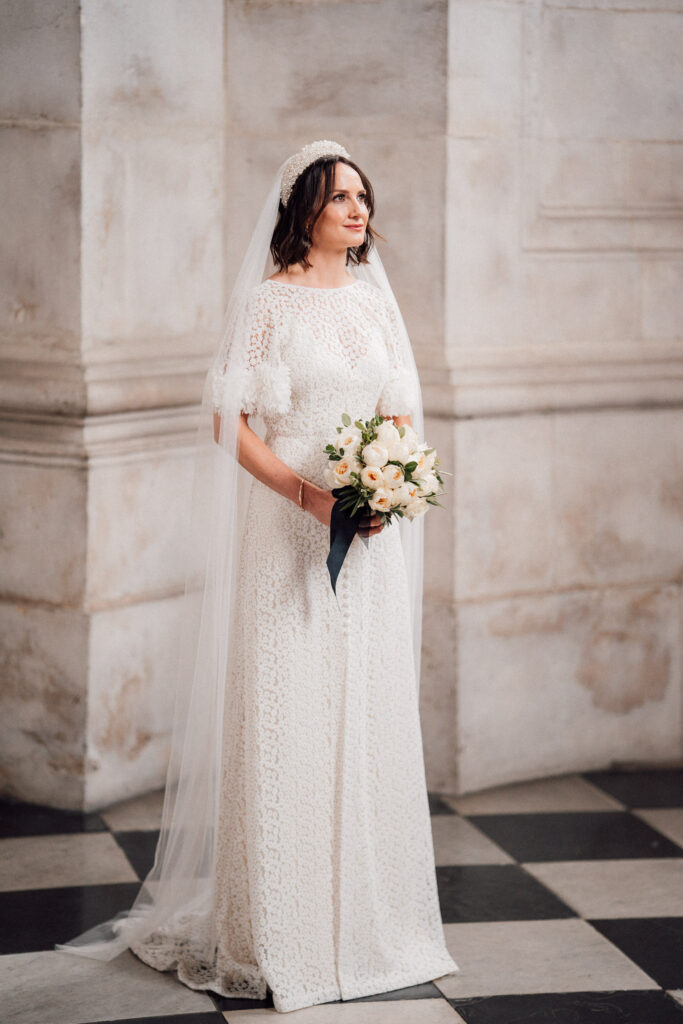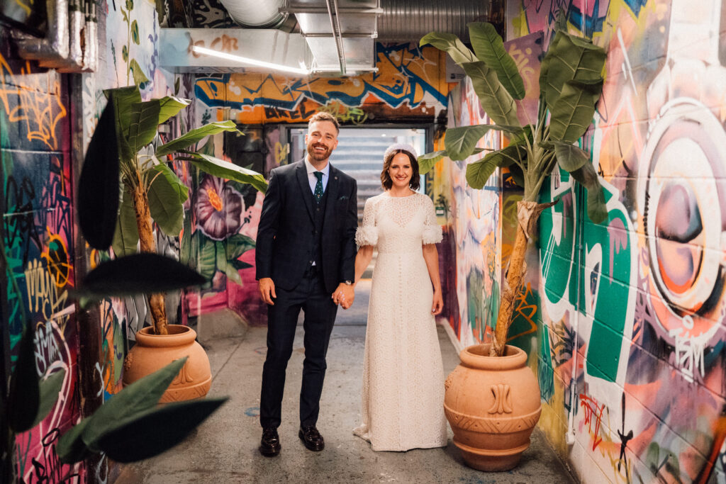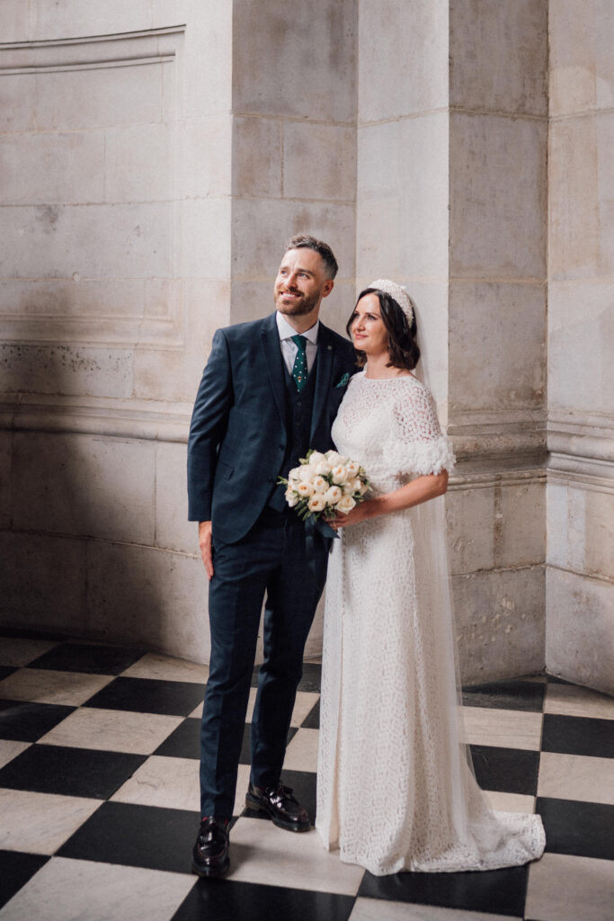 But before we get swept up in the grandeur of the venue, let’s take a moment for Nick and Ashe. Two wonderful and intentional people who knew what they wanted, and went after it with their vision for this day. From Ashe’s beautiful dress from Spanish Designer – Immacle (stunning dresses – more please!), to their requirement for Guinness at the vibey reception venue, to the seven-piece brass band that played into the night at Gordon Ramsay’s Pizza Kitchen basement.