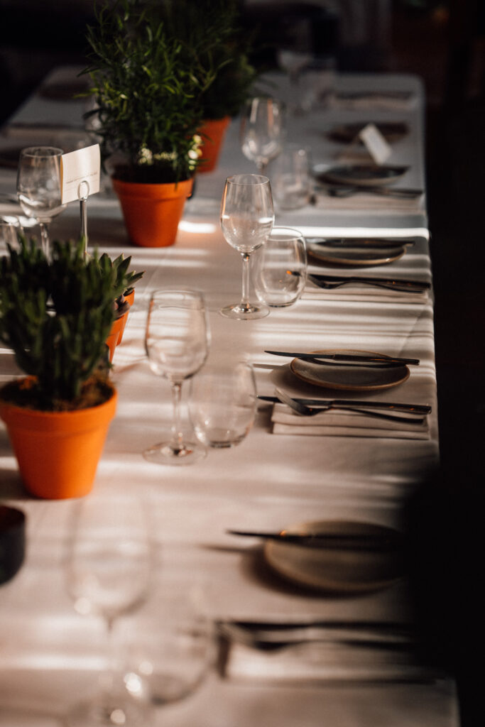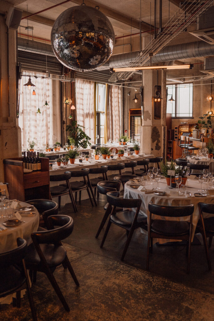 Gordon Ramsay’s Bread street kitchen is a chilled out, and industrial venue for dinners and events. Dressed up just a little with potted succulents and ferns, it made for a cool, contemporary dinner setting before the party. Can something really be minimalist with a giant mirror ball hanging from the roof? I’m not so sure… but it’s the word I’m going to use!
