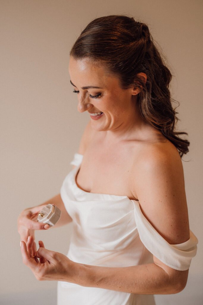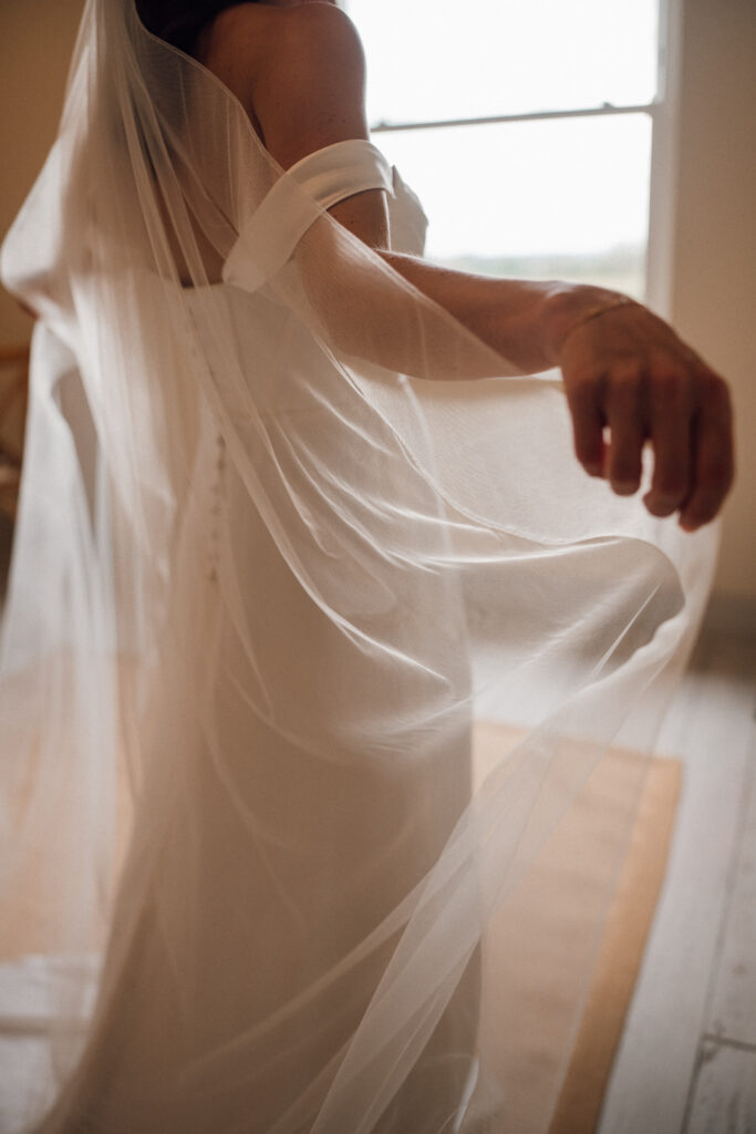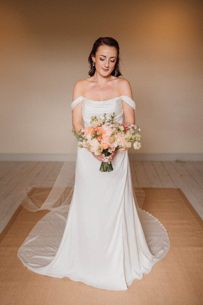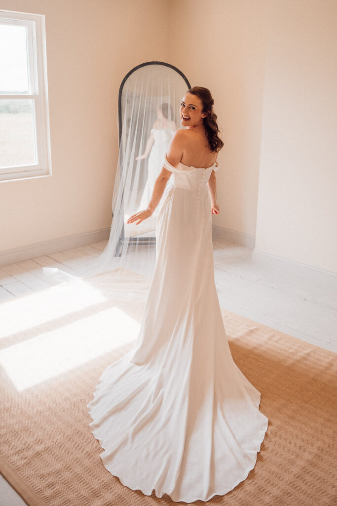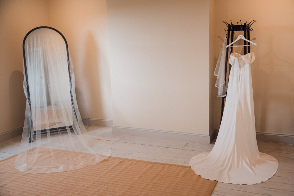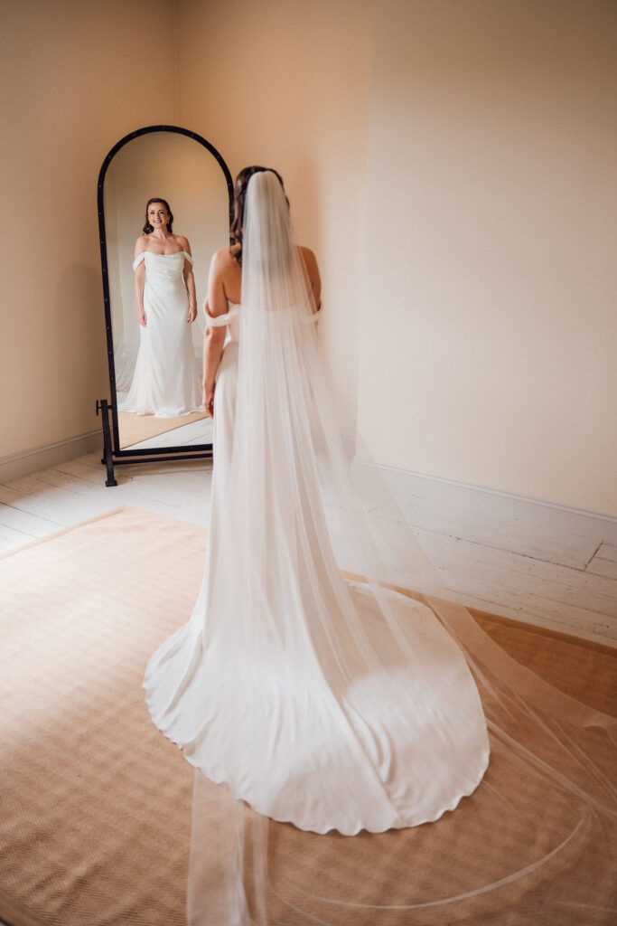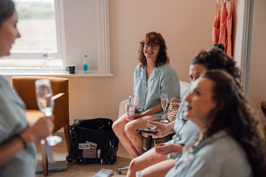 Carly got ready in the newly opened bridal preparation space at Grangefields, which is filled with soft, directional light and a calm, considered feel. The morning unfolded at an easy pace, giving space for quiet moments, conversation, and anticipation before the day began.