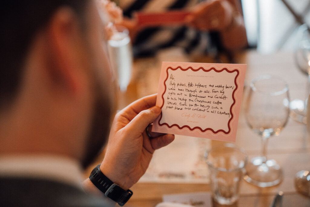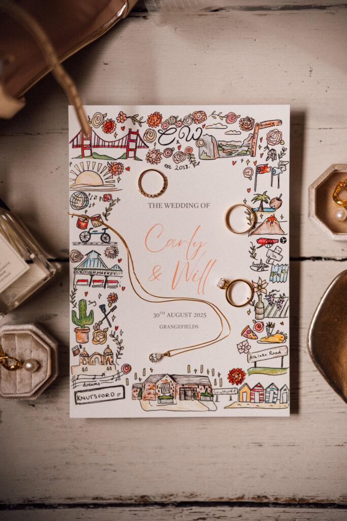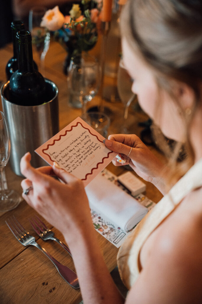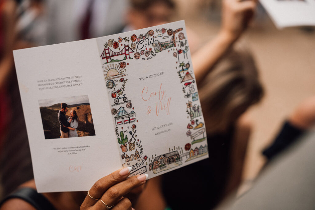 Custom stationery by Imogen Ink set the tone early, while the order of service, created by Keep Dates by Gem, added another layer of personal detail. These touches gave the day cohesion and clarity, while still feeling relaxed and unfussy.