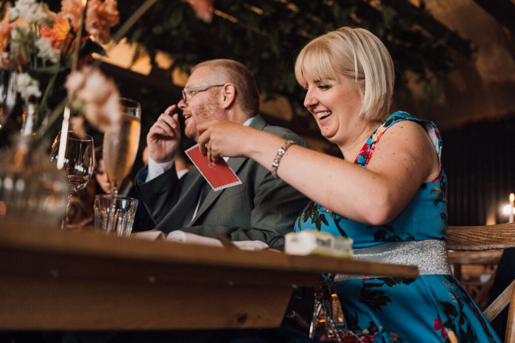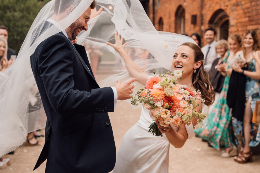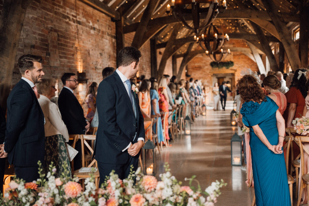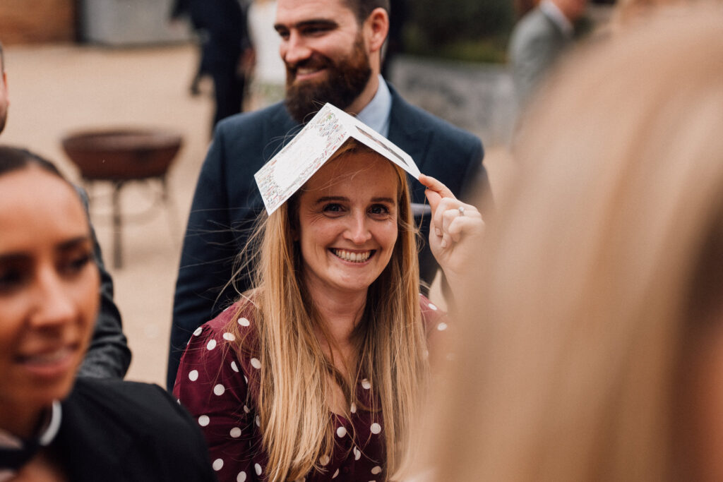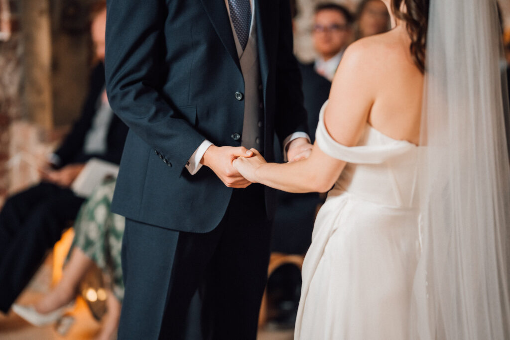 The ceremony itself was beautiful and emotionally grounded, followed by some of the most joyful confetti we’ve seen. Just after that moment, the rain arrived properly – one of those classic British wedding-day shifts. Rather than interrupting the flow, it became part of the story, bringing people closer together and adding atmosphere to the afternoon.