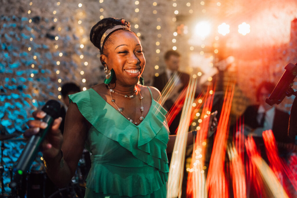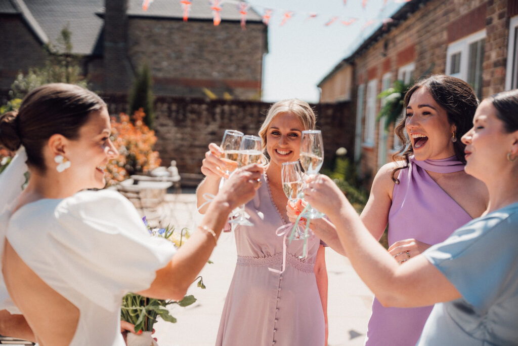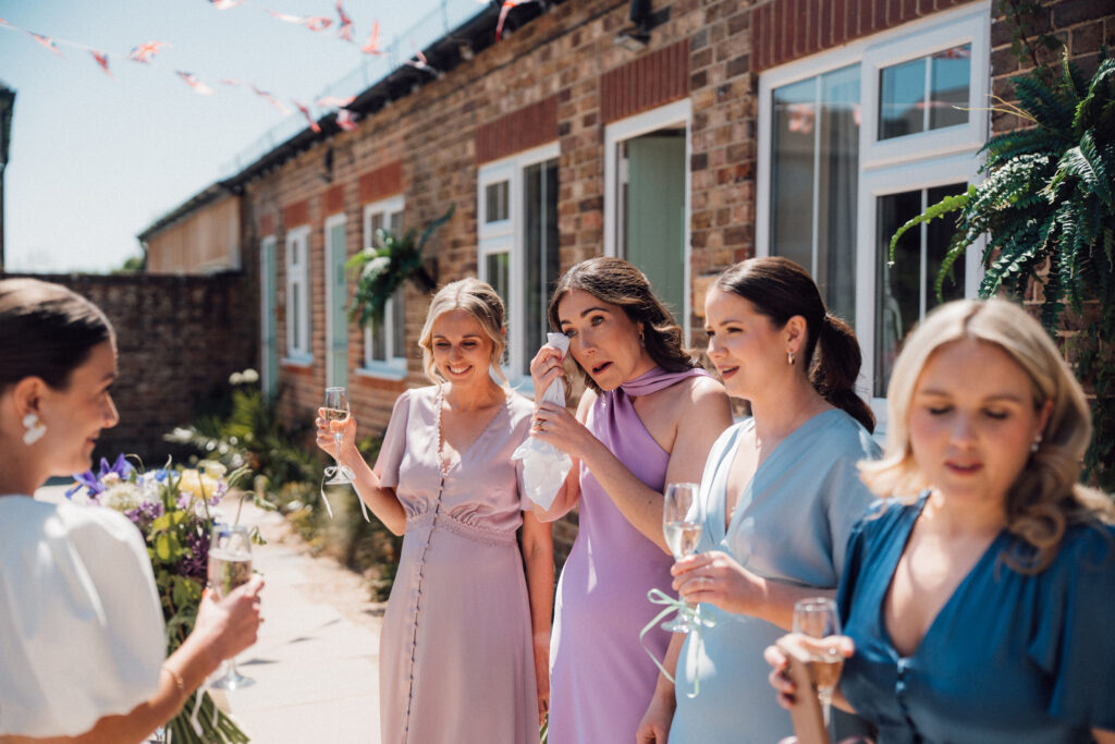 The details were thoughtful without ever feeling fussy. Amelia’s statement puff-sleeved dress set the tone beautifully, paired with mismatched pastel bridesmaids dresses from Rewritten who each chose something that felt like them. Locally grown flowers from Chalk Farm Flowers kept everything rooted in the season, handmade mango chutney favours added a personal touch, and live soul music gave the evening that effortlessly joyful lift when everyone finally found the dancefloor.